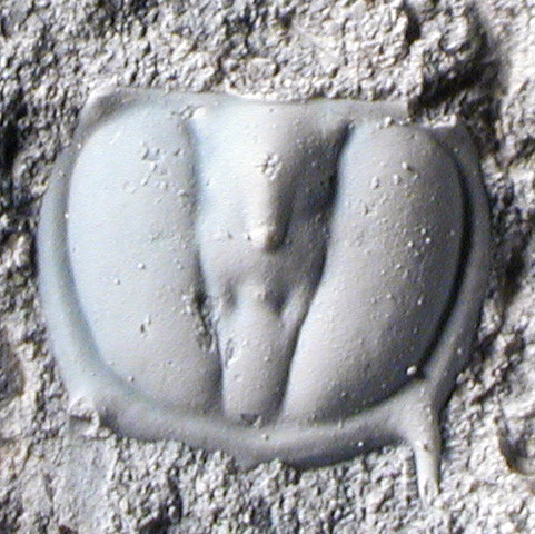 Beschreibung: Pygidium Clavagnostus repansus - mit Ammoniumchlorid geweißt